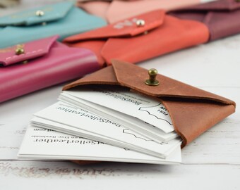 Perfect for use as a wallet or as a business card holder.our leather card holder is available in tan and dark brown.